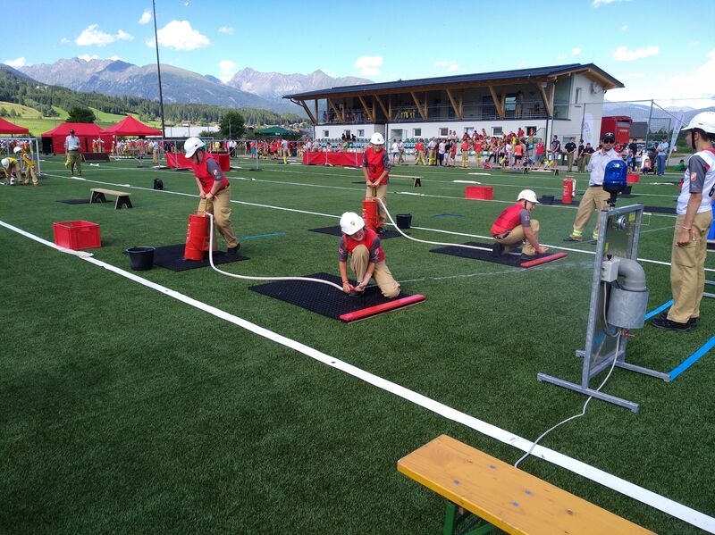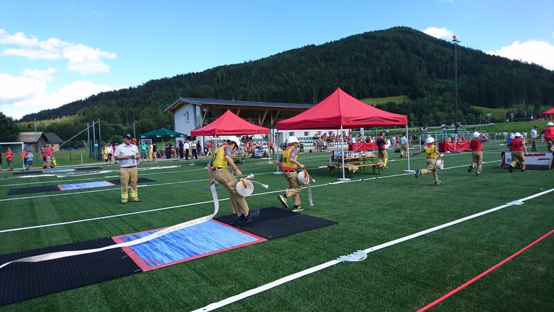 Begonnen hat das Lager Donnerstag mit dem Landesbewerb, bei dem wir mit der Feuerwehr Rußbach als gemischte Gruppe angetreten sind. Hier erreichen wir beim Hindernislauf eine Zeit von 80s mit 30 Fehlerpunkten und beim Staffellauf eine Zeit von 102s. Mit dieser Leistung erreichten wir das Ziel, die Leistungsabzeichen in Bronze zu erhalten. Bedanken möchten wir auch bei unseren Kameraden aus Rußbach für die gute Zusammenarbeit.