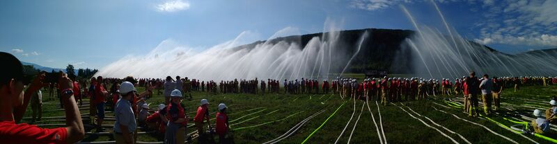 Rekordversuch mit über 200 Strahlrohren: 6 Jugendliche je Feuerwehr durften an dem Rekordversuch teilnehmen und Strahlrohre bedienen. Bei dem Rekordversuch entstanden einmalige Eindrücke und Bilder.