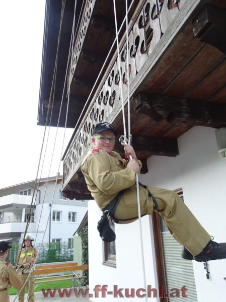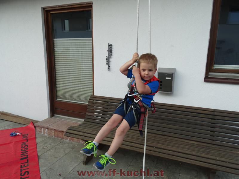 Bei der praktischen Übung konnten sich die Jugendlichen dann nach der Einführung zu den Geräten und mit ihrem Hintergrundwissen von einem Wohngebäude Abseilen bzw. Hinaufziehen. Auch hier wurden die Wichtigkeit der Gemeinschaft und das Zusammenhelfen thematisiert und ausprobiert - besonders beim Absichern muss man sich auf die anderen Kameraden/innen verlassen können. Auch die Kleinen konnten schon großen Mut beweisen und wir freuen uns jetzt schon wieder auf diesen Nachwuchs – hoffentlich bei der Feuerwehrjugend (siehe Bild: Sebastian Wimmer).