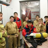 Unser Atemschutzwart Stellvertreter Richard Russegger erklärte den Jugendlichen alles Grundsätzliche, angefangen von der Ausrüstung bis hin zum Vorgehen beim Innenangriff oder bei einem Verkehrsunfall. Nach dem erlerntem theoretischen Wissen konnten die Jugendlichen auch die Atemschutzgeräte ausprobieren und beim Treppen steigen selbst Erfahrungen sammeln.