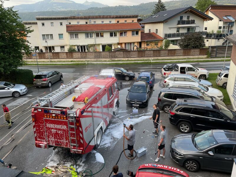 Nach dem Hochwasser standen anstelle der Übung Aufräumarbeiten an. Es wurden die Feuerwehrautos, das Feuerwehrhaus sowie die Geräte gereinigt und gewartet.