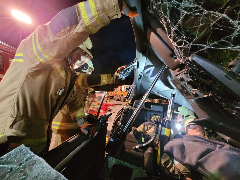 Das Rüstlöschfahrzeug übernahm die Personenrettung aus dem ersten verunfallten Fahrzeug mithilfe eines hydraulischen Rettungsgeräts. Die eingeklemmte Person wurde sicher und schonend aus dem Fahrzeug befreit. Dabei wurde ein großes Augenmerk auf die Patientenbetreuung, den effizienten Einsatz der Geräte, Sicherheit bei der Arbeit und Selbstschutz geachtet.