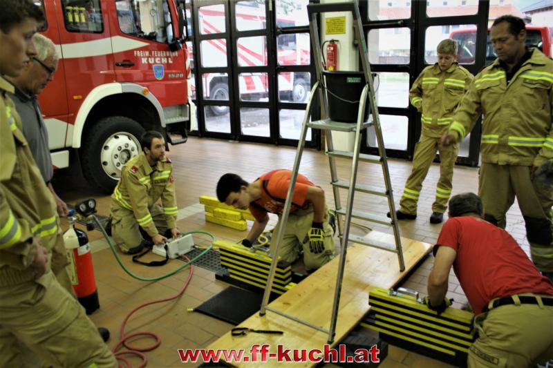 2. Station - V Stefan Brandauer: Hebekissen. Lagerort, Anwendungsmöglichkeiten. Praktische Arbeit: Der Gruppe wurde die Aufgabe gestellt, einen bis auf den Rand gefüllten Wassereimer auf einer Stehleiter so weit als möglich zu heben. Hier war neben den technischen Grundkenntnissen auch Teamgeist und Koordination gefragt …
