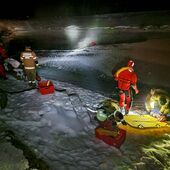 Ziel der Übung war es, den sicheren Umgang mit der Eisrettungsausrüstung zu festigen und das richtige Vorgehen bei Eisunfällen zu trainieren.