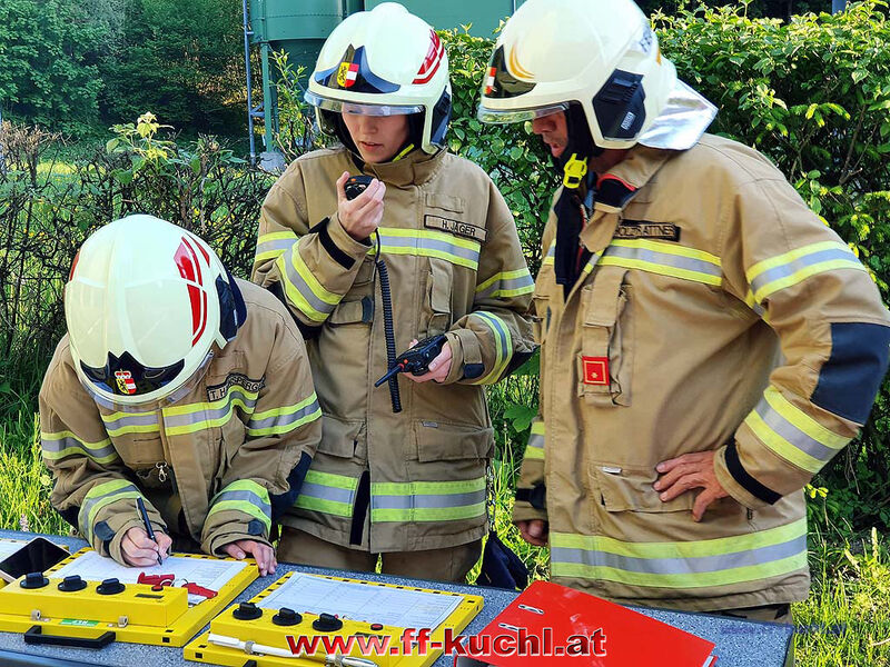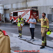 Übungsbeobachter OFK-Stv. HBI Struber Johannes und Übungsleiter OBI Wimmer Martin lobten in der Abschlussbesprechung das Engagement und die Motivation der eingesetzten Feuerwehrmitglieder und zeigten auch Verbesserungsvorschläge auf. Der Betriebsleiter der Fa. Moldan – Helmut Lischent – bedankte sich herzlich für die Arbeit aller Kuchler Feuerwehrmitglieder und lud im Anschluss auf eine Jause ein – Herzlichen Dank dafür!