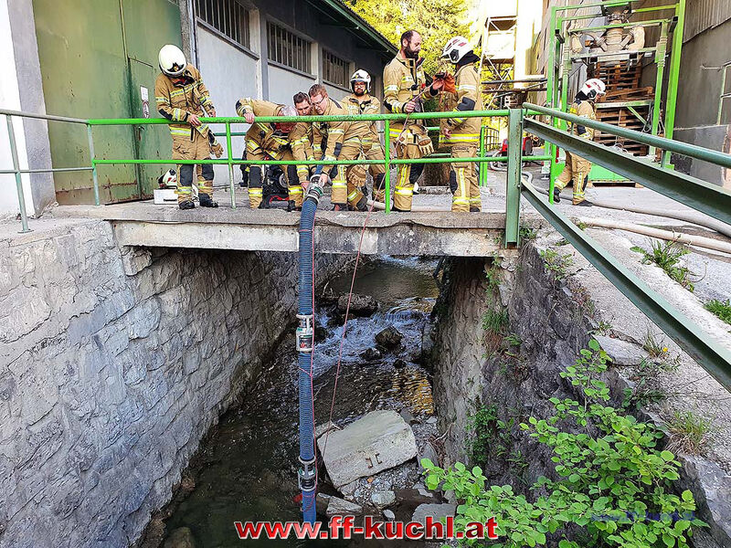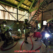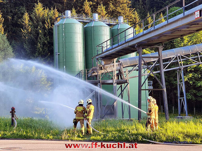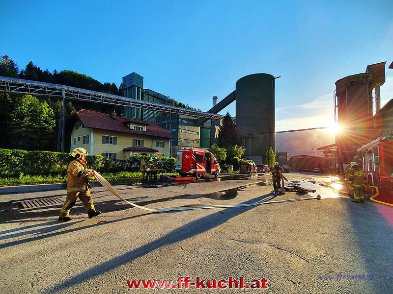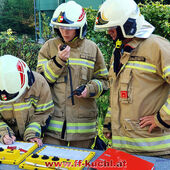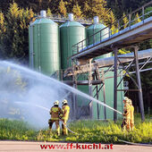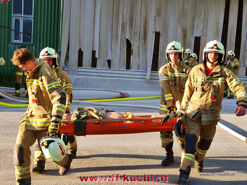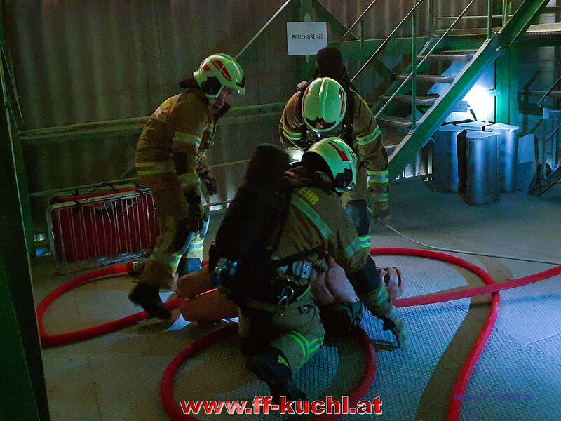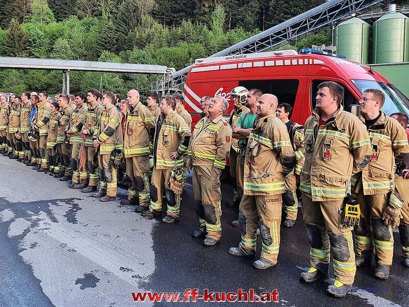 „Wir versetzen gemeinsam Berge …“ ist ein Slogan der Fa. Moldan – Baustoffe, im Kuchler Ortsteil Kellau. Dieses Motto übernahm auch die Freiwillige Feuerwehr Kuchl bei ihrer diesjährigen Florianiübung. Die Übungsannahme – Brand in der Seilbahnstation, zwei Personen vermisst – forderte die Feuerwehrkräfte der Kuchler Feuerwehr. Nach der Erkundung durch den Übungsleiter OBI Wimmer Martin und nach Sichtung der Brandschutzpläne, wurde gemeinsam mit dem Löschzug Jadorf die Wasserversorgung aufgebaut und ein Innenangriff unter schwerem Atemschutz durchgeführt. Dieser gestaltete sich relativ schwierig, da die Brandbekämpfung und Personenrettung über enge Stahlstiegen und über mehrere Stockwerke hinweg durchgeführt werden musste. In weiterer Folge wurde ein Atemschutzsammelplatz für die insgesamt drei eingesetzten Atemschutztrupps und ein Außenangriff aufgebaut. Rasch konnten die vermissten Personen gefunden und gerettet werden. Im Anschluss daran wurde der angenommene Brand hoch oben in der Seilbahnstation durch den gezielten Einsatz gelöscht und damit das Übungsziel erreicht.