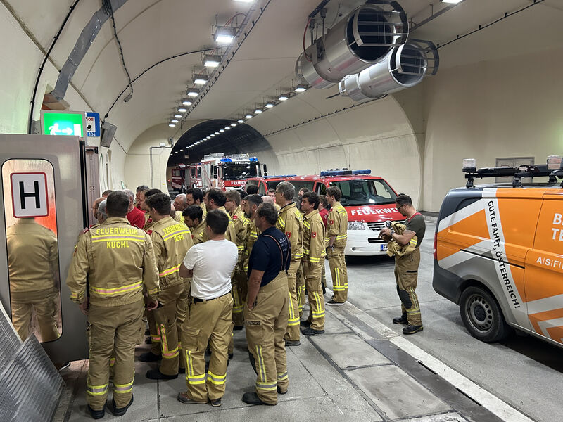 Am 19. Juni 2024 besichtigte die Feuerwehr Kuchl im Rahmen der Zugsübung den neu renovierten Ofenauertunnel in Golling. Thomas Harlander (Zugskommandant FF Golling und Betriebstechniker bei der ASFINAG) erklärte den Feuerwehrmitgliedern der Feuerwehr Kuchl die Zufahrt zu den Tunnelanlagen, die neue Überwachungstechnik sowie die Belüftung und Wasserversorgung des Tunnels. Weiters wurden uns die neuen Querschläge des Tunnels, die teilweise mit LKWs befahrbar sind, gezeigt. Da wir im Falle eines Einsatzes bei Alarmstufe 2 mit dem Rüstlösch- und Pumpenfahrzeug ausrücken, wurde die Einsatztaktik im Falle eines Brandes erläutert. Wir bedanken und bei Thomas Harlander für die interessante Besichtigung.