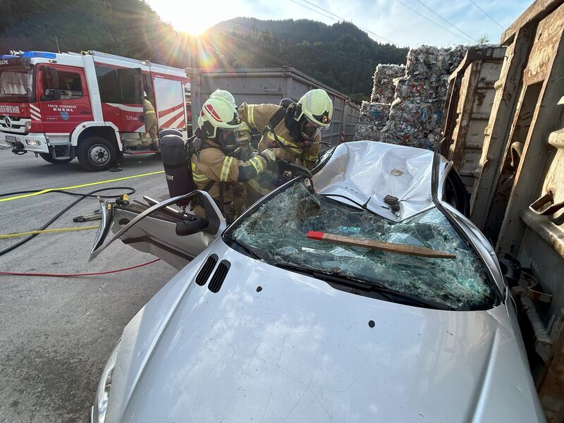 Bei der Abarbeitung dieses Szenarios lag der erste Fokus darauf, die Personen aus dem PKW und die Person von der Ladefläche des LKWs zu retten und ein Übergreifen des Brandes vom PKW auf den Gefahrengut LKW zu verhindern. Weiters wurde die Gefahrenstelle großräumig abgesperrt und ein Notdekobecken errichtet. Eine gesicherte Wasserversorgung wurde über einen naheliegenden Hydranten sowie über eine Saugstelle am Weißenbach hergestellt.