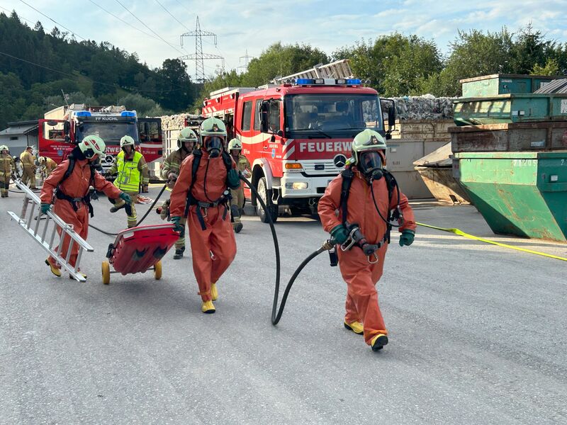 Sämtliche Arbeiten im Gefahrenbereich des Gefahrenguts wurden unter Atemschutz und mit Chemikalenschutzanzügen (Schutzstufe 2) durchgeführt.