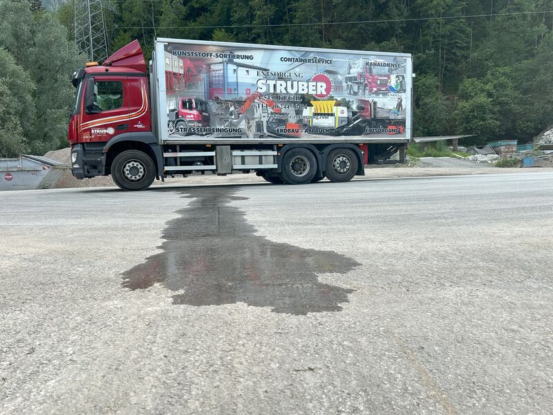 Nach erfolgter Personenrettung wurde der undichte Behälter, aus dem das Gefahrengut ausfloss, abgedichtet und die Flüssigkeit mittels Membranpumpe umgepumpt.