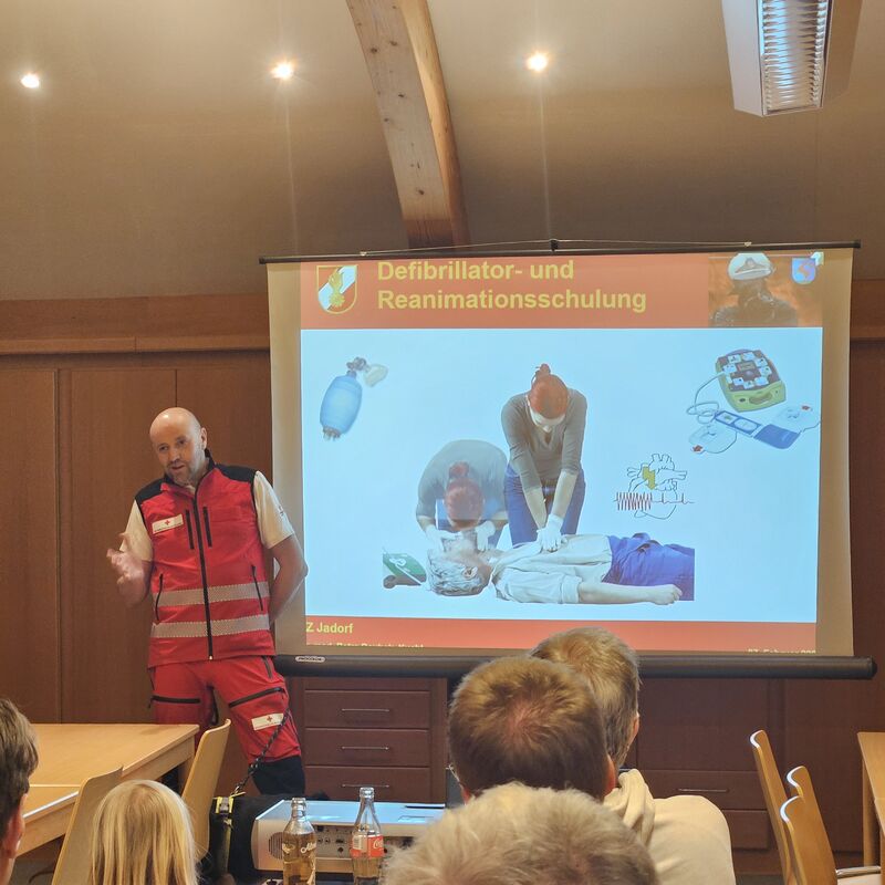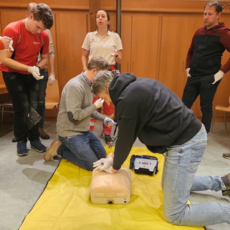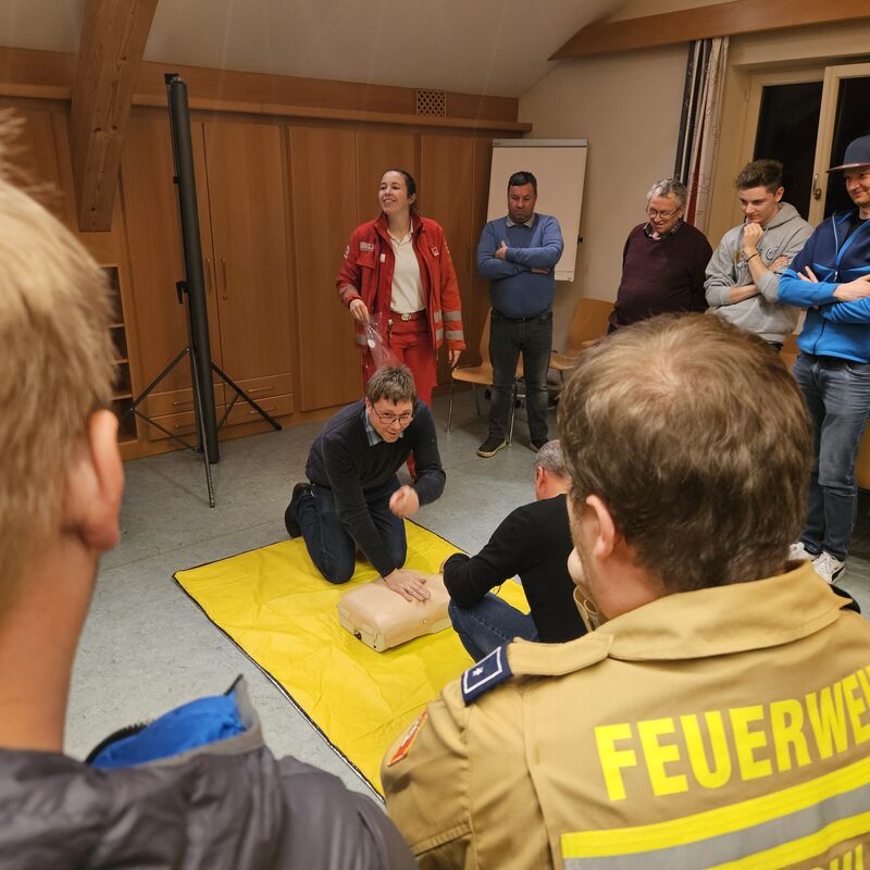 Mitglieder vom Roten Kreuz Salzburg, Dienststelle Golling sowie die Kuchler Ärztin Frau Dr. Petra Daubek-Puza hielten eine kurzen Vortrag und gingen dann über zu praktischen Übungen in der Erste Hilfe.