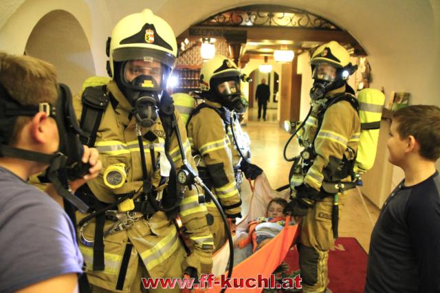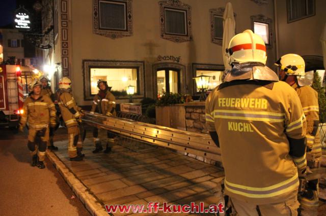 Trotz laufendem Betrieb konnte der erste und zweite Stock vernebelt werden. Dies erschwerte die Rettungsaktion der Atemschutztrupps erheblich. Drei verletzte Personen konnten trotzdem sehr rasch von den ATS-Trupps aus dem Gefahrenbereich gerettet werden. Die restlichen Gäste hatten sich auf den Balkon im zweiten Obergeschoss in Sicherheit gebracht und warteten auf ihre Rettung. Diese erfolgte durch die Drehleiter der Freiwilligen Feuerwehr Hallein, die 2016 in den Dienst gestellt wurde. Trotz beengter Verhältnisse konnten auch die Gäste aus dem 2. Stock innerhalb kürzester Zeit gerettet werden.