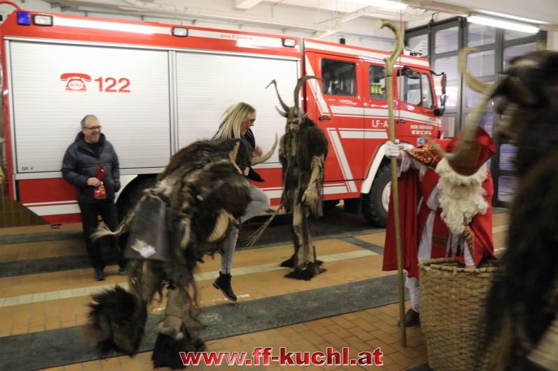 Während eines Gruppenfotos unserer Feuerwehrjugend vor dem neuen Tanklöschfahrzeug läuteten die Glocken. Aber nicht die Handy- oder Kirchenglocken, nein, Krampusse und der Nikolaus waren im Anzug ...