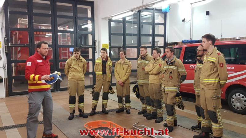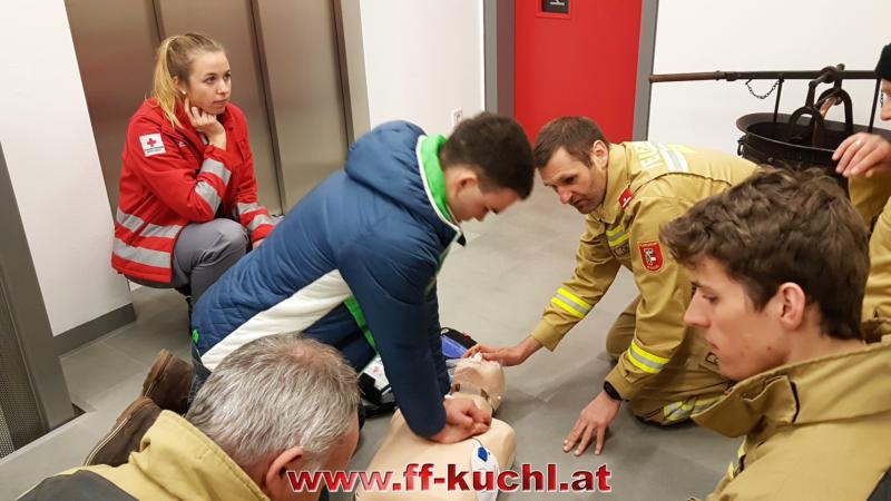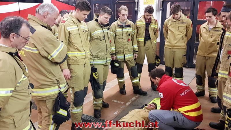 Die Schulung in Erster Hilfe ist bei der Freiwilligen Feuerwehr Kuchl ein fixer Bestandteil im jährlichen Ausbildungsprogramm. Auch heuer übernahmen die Experten des Roten Kreuzes - Ortsstelle Golling - die Gestaltung der Winterschulung und forderten die Mitglieder der Freiwilligen Feuerwehr Kuchl mit sehr interessanten Einsatzszenarien.