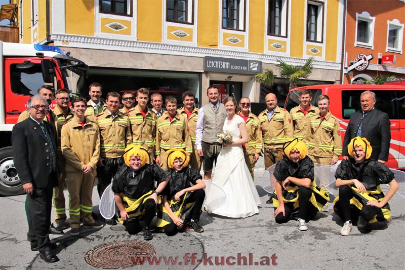 Gruppenkommandant und Chef der hiesigen Insekteneinsatzgruppe - Lm Andreas Haunsperger - gab an diesem wunderschönen Samstag seiner Daniela das JA-Wort. Erstens ein Grund, um zu feiern und zweitens natürlich, um auch mit der Feuerwehr bei der Hochzeit mit dabei zu sein ...