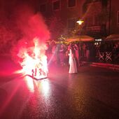 Der Ernstfall nahm seinen Lauf, eine ital. Ape mit brennenden „Pilzen“ rollte über die Marktstraße heran.