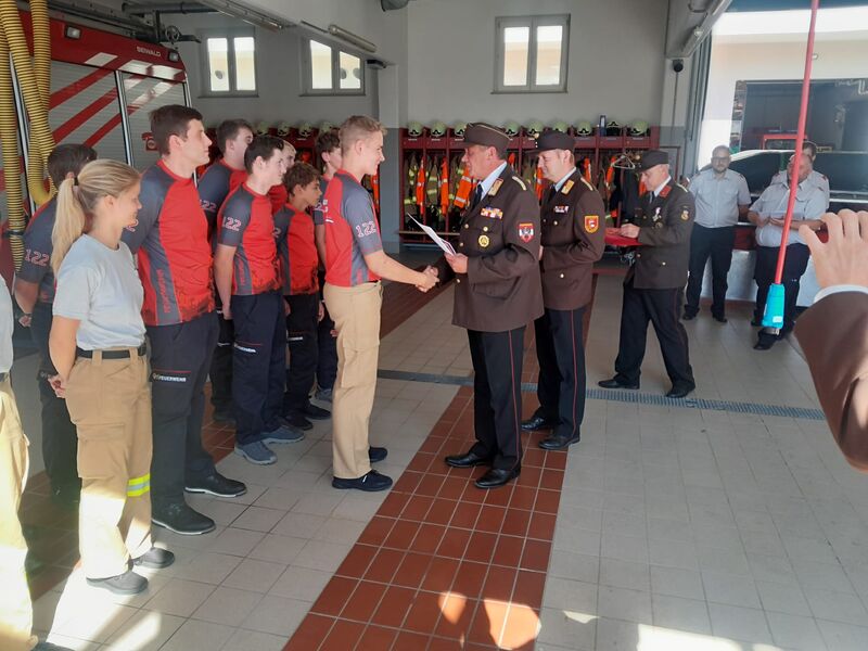 Auch Landesfeuerwehrkommandant LBD Trinker Günter, Bundesfeuerwehrrat Eibl Manfred, Abschnittsfeuerwehrkommandant 1 Tennengau BR Pongratz Christoph, Ortsfeuerwehrkommandant HBI Gimpl Wolfang, Ortsfeuerwehrkommandant ABI Scherfl Gerhard und Ortsfeuerwehrkommandant Stv. OBI Struber Johannes und Löschzugskommandant Marchl Manfred lobten die Vorbereitung und die vorbildliche Motivation der insgesamt sechs Jugendlichen aus dem Tennengau.