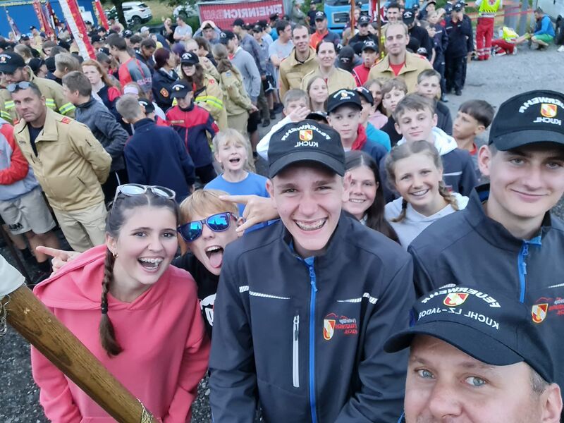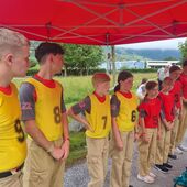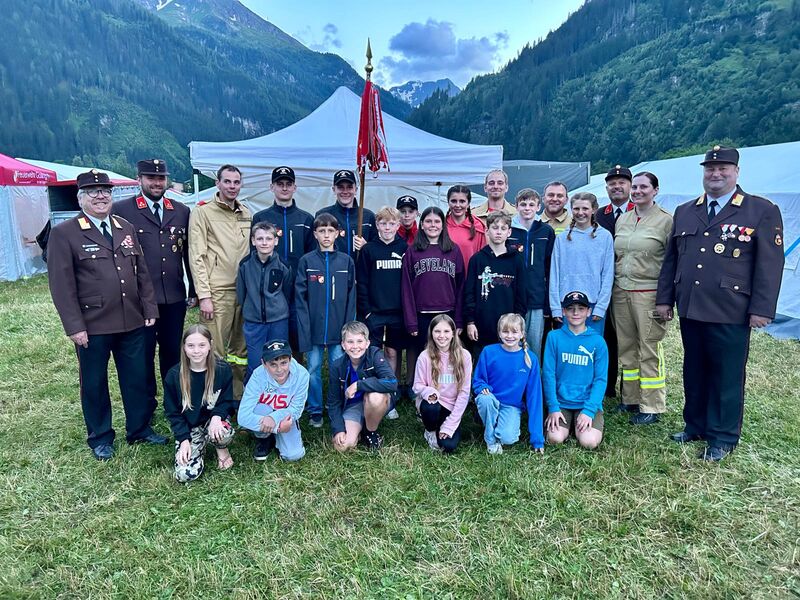 Der Freitag war mit der Teilnahme am Landesbewerb ein besonderer Tag. Unsere Jugendlichen haben die letzten Monate viel trainiert, um auf diesen Bewerb vorbereitet zu sein. Aufgrund der großen Mitgliederzahl konnten wir mit 2 Gruppen bei diesem Bewerb antreten. Mit einer Zeit von 67 und 81 Sekunden waren unsere Jugendlichen sehr schnell, leider haben sich durch die Nervosität einige Fehler eingeschlichen. Dennoch haben wir unser Ziel - das Leistungsabzeichen in Bronze - erreicht. Am Abend fand die Siegerehrung des Landesbewerbes am Lagerplatz (wieder im Trockenen) statt. Am Abend besuchten uns noch OFK Gerhard Scherfl und OFK Stv. Johannes Struber sowie weitere Kameraden aus dem aktiven Dienst. In diesem Rahmen konnten die verdienten Abzeichen würdevoll an die Jugendlichen überreicht werden.