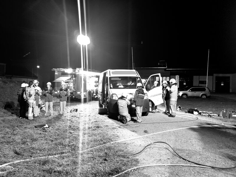 Bei einer vorherigen Übung wurden bereits die Geräte sowie der Arbeitsablauf bei einem Verkehrsunfall mit einer eingeklemmten Person erklärt.