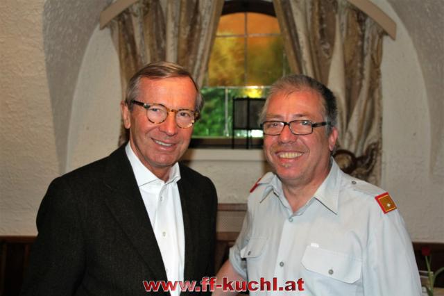 Im Anschluss an den offiziellen Festakt folgte das Mittagessen im Stammwirtshaus Gasthof zur Goldenen Stiege, umrahmt von der Musikkapelle Kuchl. Zum kameradschaftlichen Ausklang konnte Ortsfeuerwehrkommandant ABI Rupert Unterwurzacher auch Landeshauptmann Dr. Wilfried Haslauer samt Familie herzlich begrüßen ...