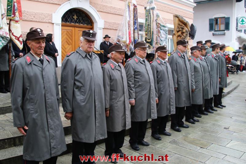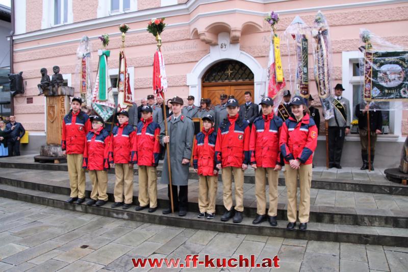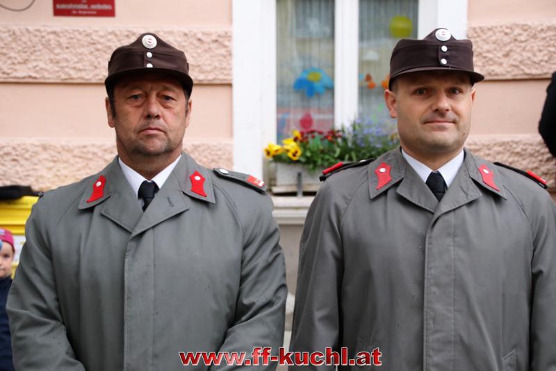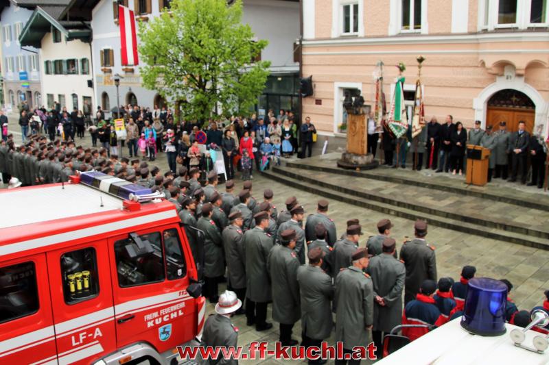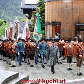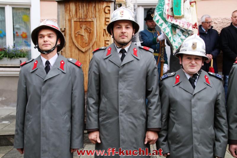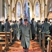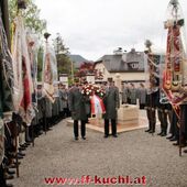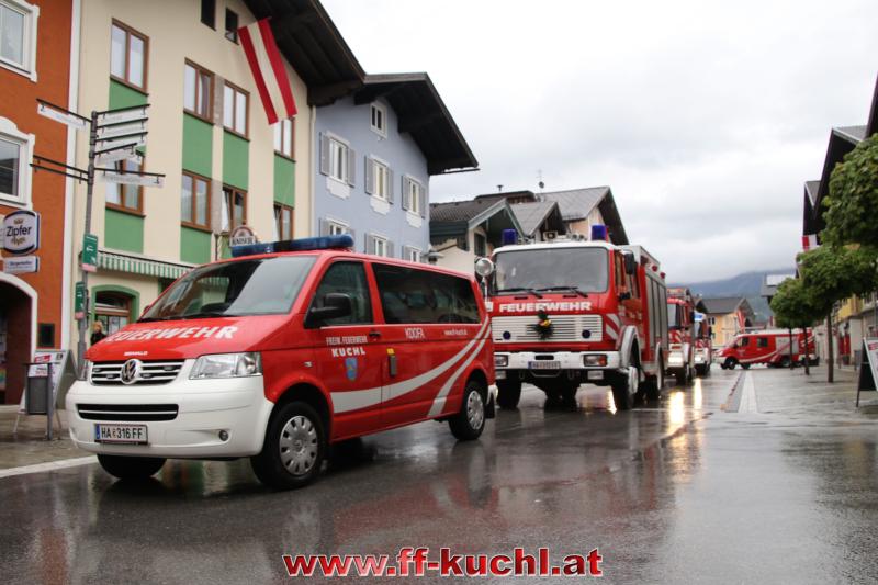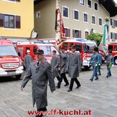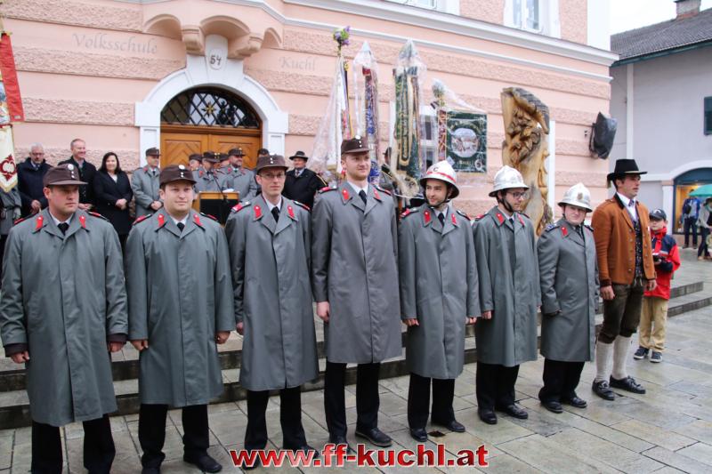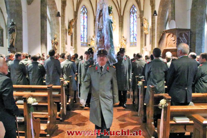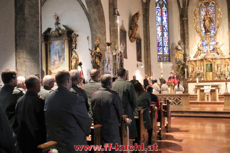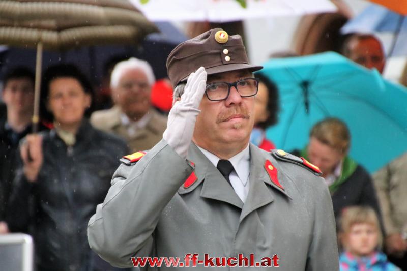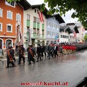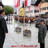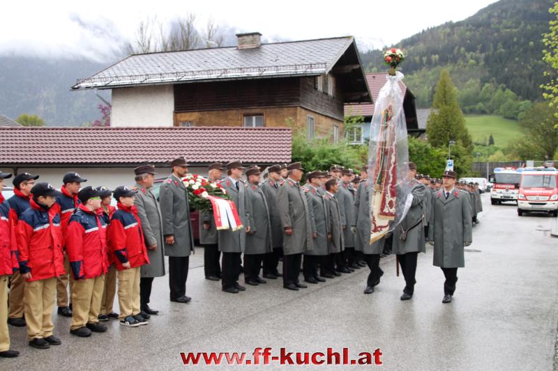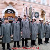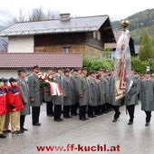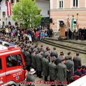 Trotz schlechtem Wetter und Regen fand der Florianitag der Freiwilligen Feuerwehr Kuchl unter Rekordbeteiligung statt. Neben den örtlichen Fahnenabordnungen, den Ehrengästen und der Musikkapelle Kuchl nahmen genau 130 Feuerwehrmitglieder der Hauptwache Kuchl und vom Löschzug Jadorf daran teil. Nach dem Gedenken an die verstorbenen Mitglieder konnte zusammen mit Pfarrer Gerhard Mühlthaler - wunderschön umrahmt von der Musikkapelle Kuchl - die hl. Messe gefeiert werden.