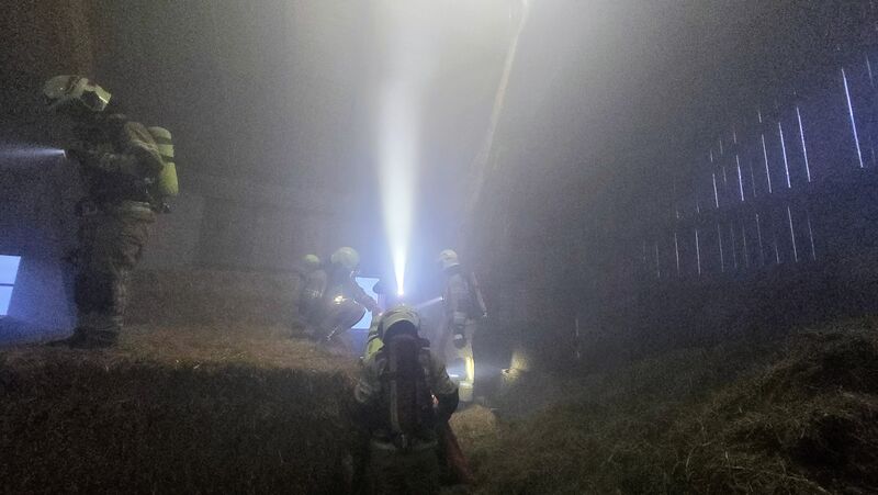 Die von HBI Johannes Struber konzipierte Übung umfasste mehrere Einsatzschwerpunkte: Die Suche nach acht vermissten Personen, die Brandbekämpfung in einer Garage mit landwirtschaftlichen Geräten inklusive Brandausbreitung auf das Stallgebäude sowie die Errichtung einer 1,2 kilometerlangen Zubringerleitung.