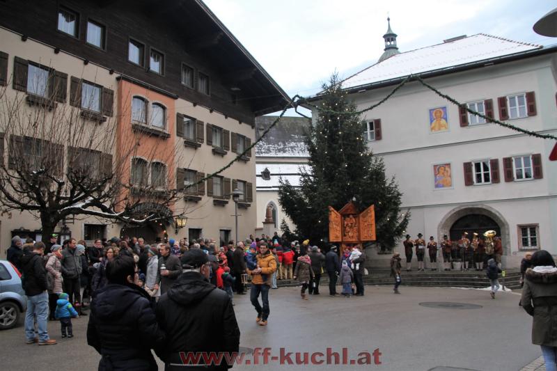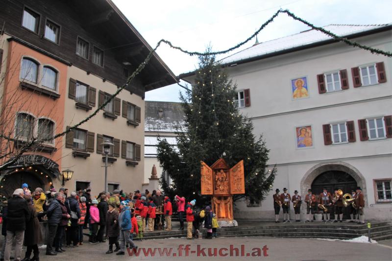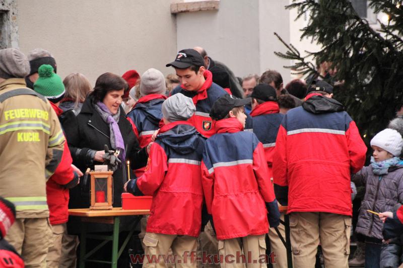 Wie jedes Jahr verteilte auch die Feuerwehrjugend Kuchl das Friedenslicht vor der Pfarrkirche, umrahmt von der Bläsergruppe der Musikkapelle Kuchl, an die Kuchler Bevölkerung. Herzlichen Dank für die vielen Spenden.