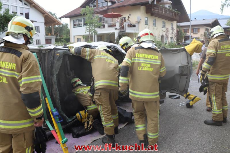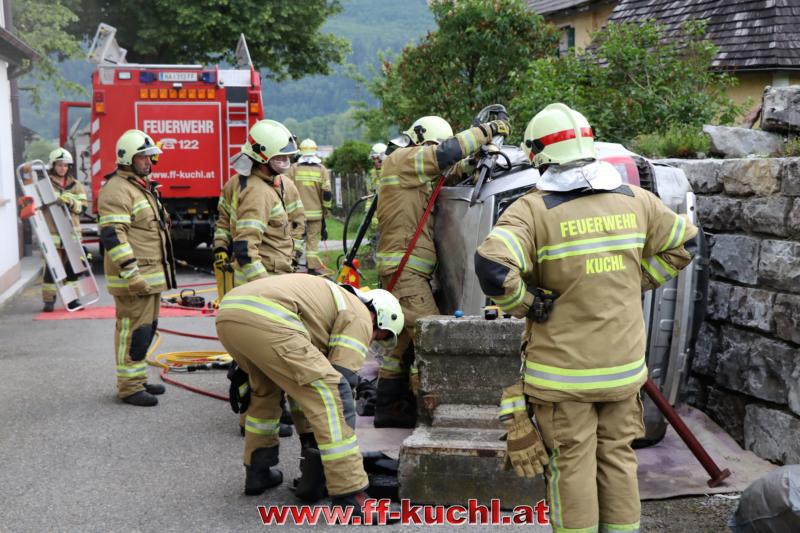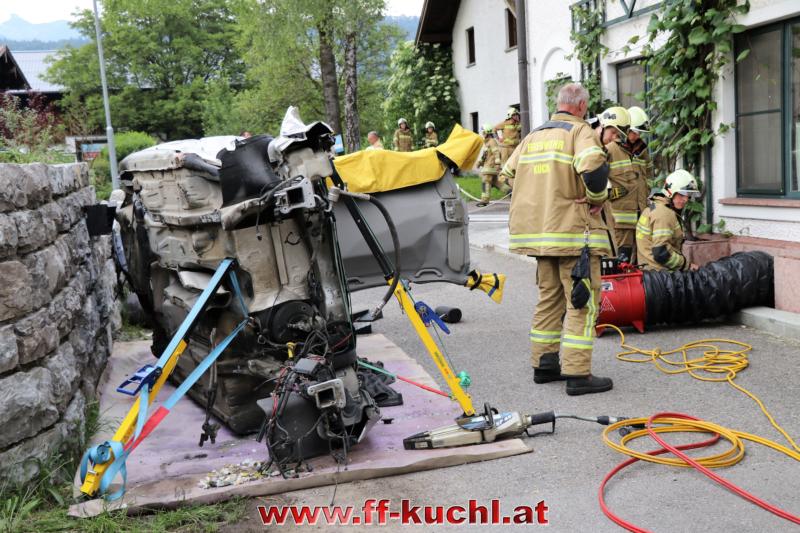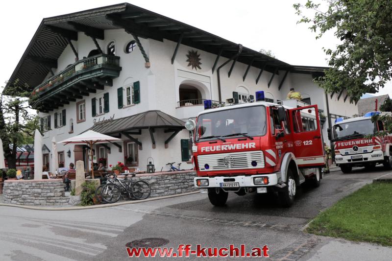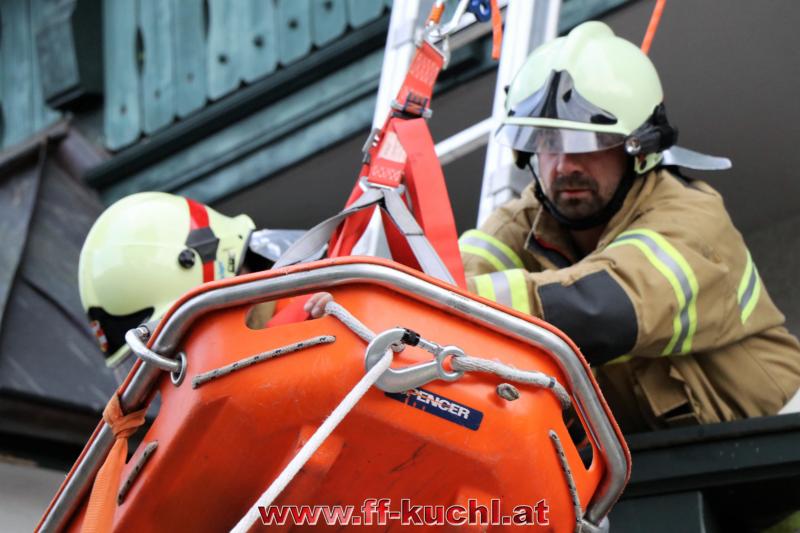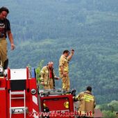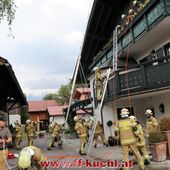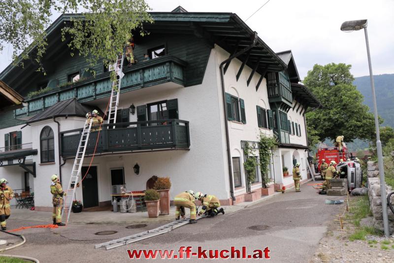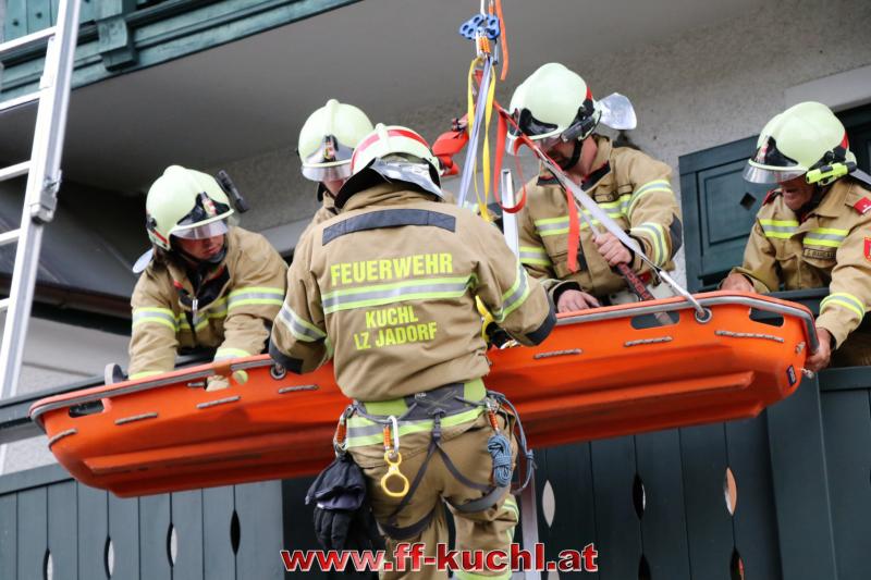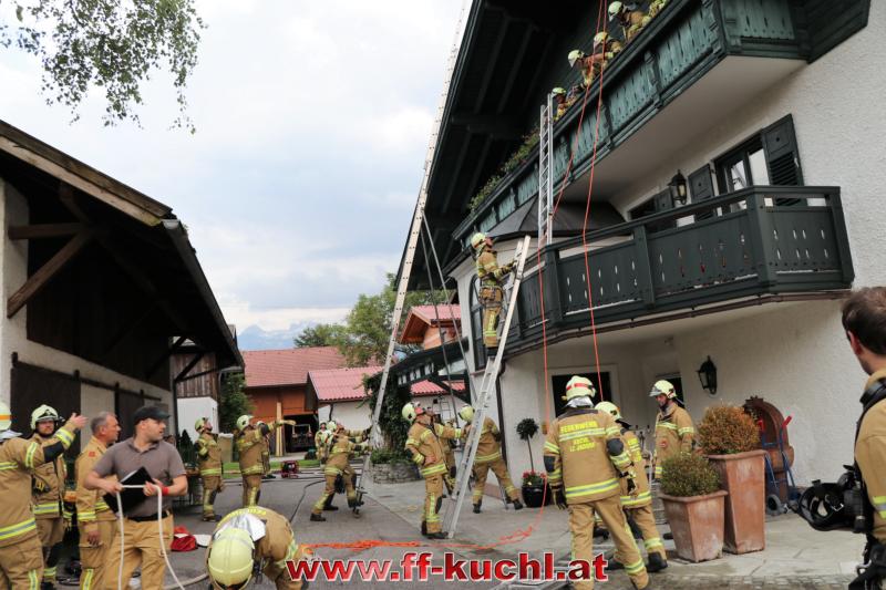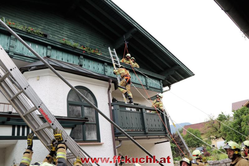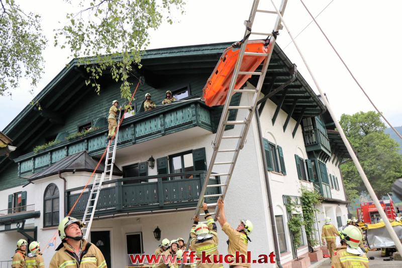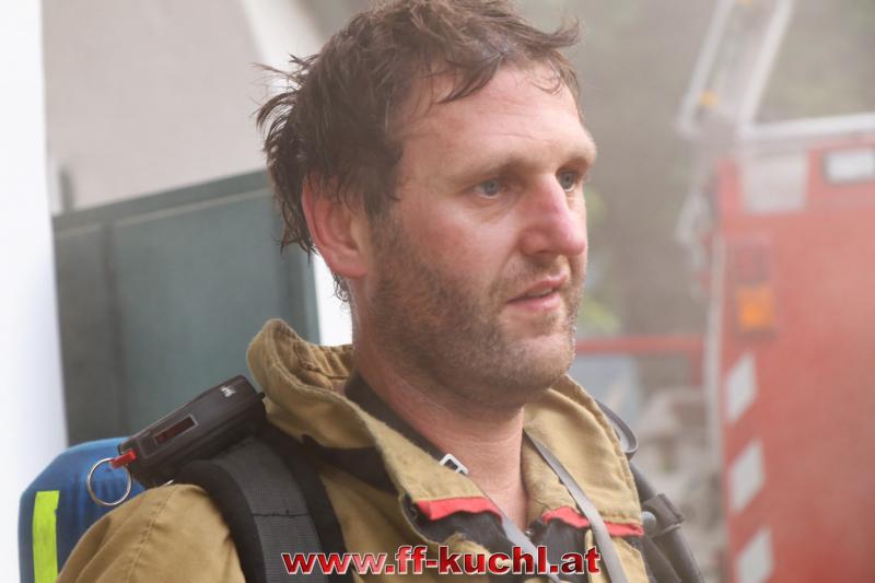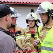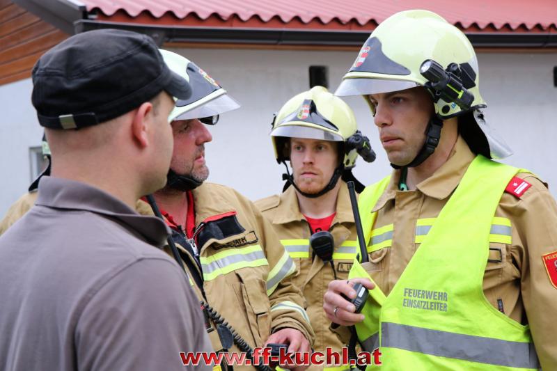 Eine gehörige Portion Stress für die Einsatzübungsleiter. In diesem Fall erkundete Löschzugskommandant BI Mayr Christian die Lage und setzte die ersten Maßnahmen. In weiterer Folge wurde zusammen mit den eintreffenden Kameraden der Hauptwache Kuchl (Bm Wimmer Martin, HV Unterwurzacher Rupert) die Einsatzleitung gebildet und Unterabschnitte eingeteilt (Personenrettung Balkon: Lm Struber Johannes; Personenrettung PKW: Bm Holztrattner Rudolf; Wasserversorgung: Lm Neureiter Stefan; ATS-Sammelplatz: V Brandauer Stefan).