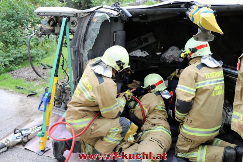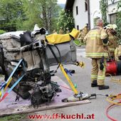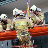 Übungsannahme: Explosion beim Jadorferwirt - das Stiegenhaus ist eingestürzt - mehrere Personen im verrauchten Keller vermisst - mehrere verletzte Personen am Balkon - PKW durch die Explosion umgestürzt und Lenker eingeklemmt ...