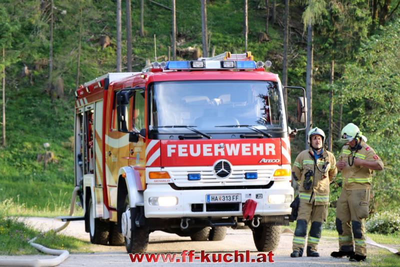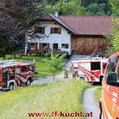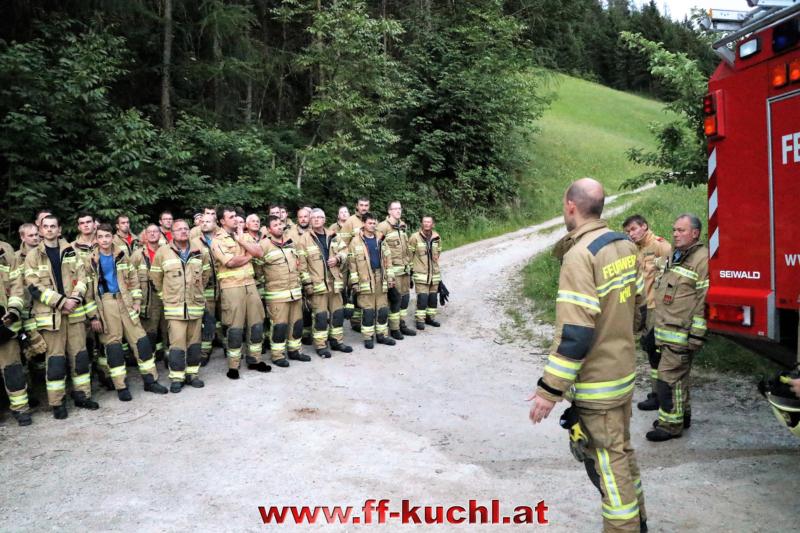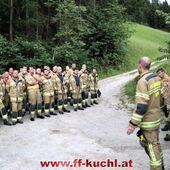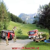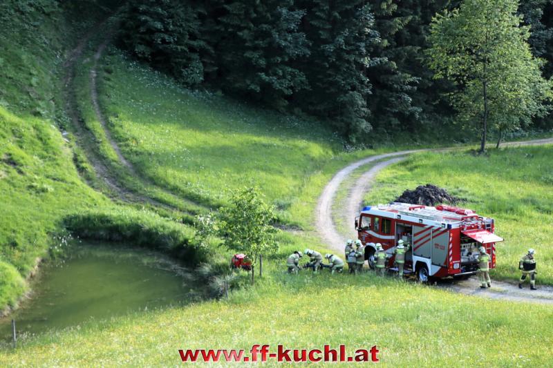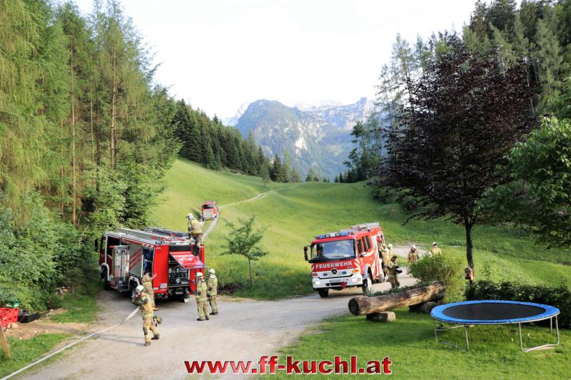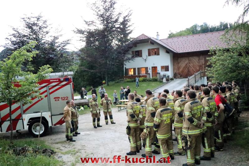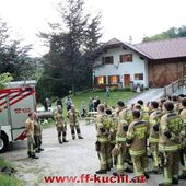 Im letzten Winkel des Kuchler Ortsteils Kellau (46) liegt an der Grenze zu Scheffau und Golling, idyllisch das Bauerngut Harreck. Martina und Matthias Essl und ihre Familie wohnen hier relativ einsam auf einer Höhe von ca. 700 m. Die Verantwortlichen des I. Zuges - HBI Struber Johann und OBm Wimmer Martin und ihr Team suchten sich dieses Objekt für die Gemeinschaftsübung aus, um das entlegene Bauernhaus bei den eigenen Mitgliedern bekannter zu machen und die Wasserversorgung über eine steile Forststraße sicher zu stellen.