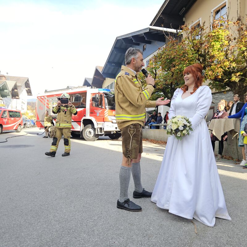 Besonders bemerkenswert ist, dass Stefan sogar um 5 Uhr in der Früh bereit war, seine Hochzeitsnacht zu unterbrechen, um zu einem Feuerwehreinsatz zu fahren. Dies zeigt Stefans Engagement und seinen Einsatz für die Feuerwehr Kuchl. Um sicherzustellen, dass dies auch in Zukunft so bleibt, musste seine Ehefrau Marina unseren obligatorischen Hochzeitsvertrag unterzeichnen, mit dem sie einwilligt, Stefan stets zu unterstützen.