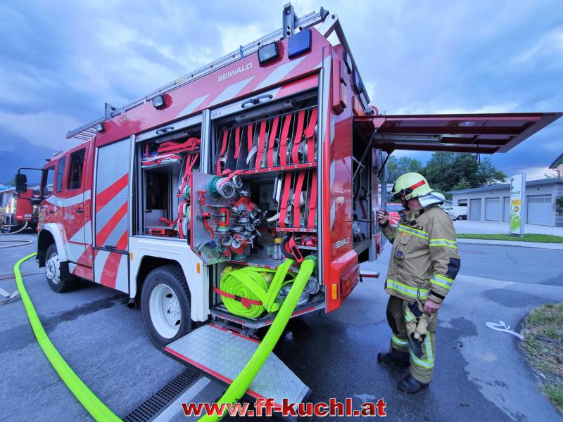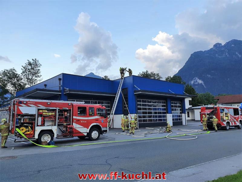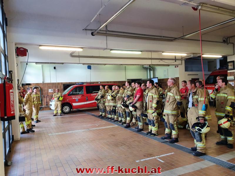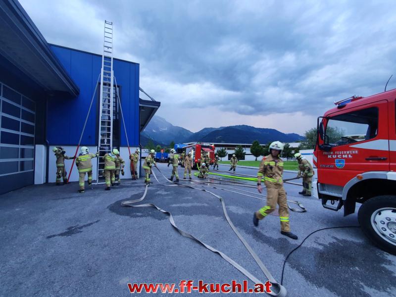OVI Unterwurzacher Rupert übernahm bei seiner Station die Wasserversorgung von Rüstlösch Kuchl zu Tank Kuchl, bereitete den Außenangriff über die 14m Leiter vor und behandelte die Möglichkeiten der Überdruckbelüftung von großen Hallen.