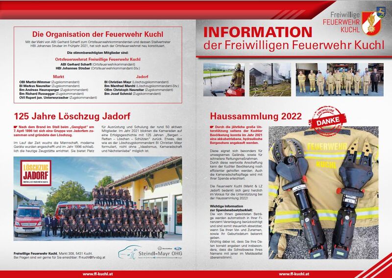 Der Jahresbericht 2021 der Freiwilligen Feuerwehr Kuchl (Markt und LZ Jadorf) ist online.