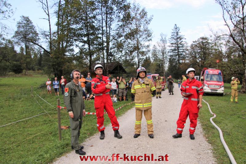 Anlässlich des bevorstehenden EU-Gipfels in Salzburg übte das ERTA-Team (Emergency Response Team Air = Luftbewegliche Eingreifkraft für Maßnahmen nach Flugunfällen) des Österreichischen Bundesheeres zusammen mit der Freiwilligen Feuerwehr Kuchl und den Tennengauer Flughelfern den Ernstfall. Die Freiwillige Feuerwehr Kuchl ist Stützpunkt für die Waldbrandausrüstung im Tennengau.