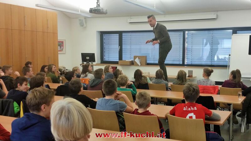 Und wie kommt der Autor Bart Moeyaert nun auf den Tisch im Feuerwehrhaus? Ganz einfach: Auf Grund einer Baustelle in der neuen Mittelschule Kuchl wurde das Feuerwehrhaus Kuchl als Veranstaltungsort gewählt und so konnten 60 Schüler, einige Lehrer und der Ortsfeuerwehrkommandant einen wirklich interessanten Vormittag genießen und den Werdegang und das Leben des interessanten Menschen Bart Moeyaert kennen lernen.