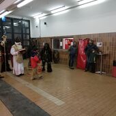 Der Nikolaus las aus seinem Buch die guten, und schlechten Taten vor. Da die guten die schlechten Taten überragten erhielten alle Jugendliche, Betreuer und auch der Kommandant ein Säckchen vom Nikolaus.