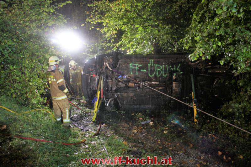 Es galt bei dieser Zugsübung (II. Zug) Personen aus ein verunfalltes Fahrzeug in Seitenlage zu retten. Besonders schwieriger Umstand: Die Unfallstelle befand sich direkt an der Salzachböschung. Die Übungslage war so realistisch vorbereitet, dass vorbeifahrende Passanten glaubten, es handelt sich um einen "echten" Einsatz.