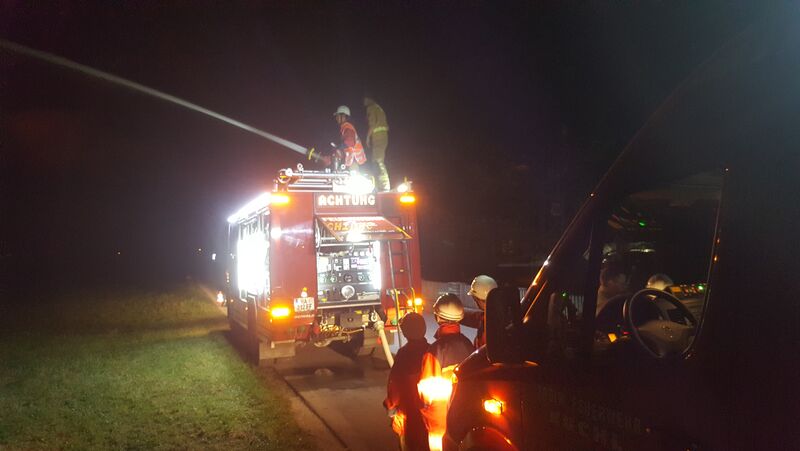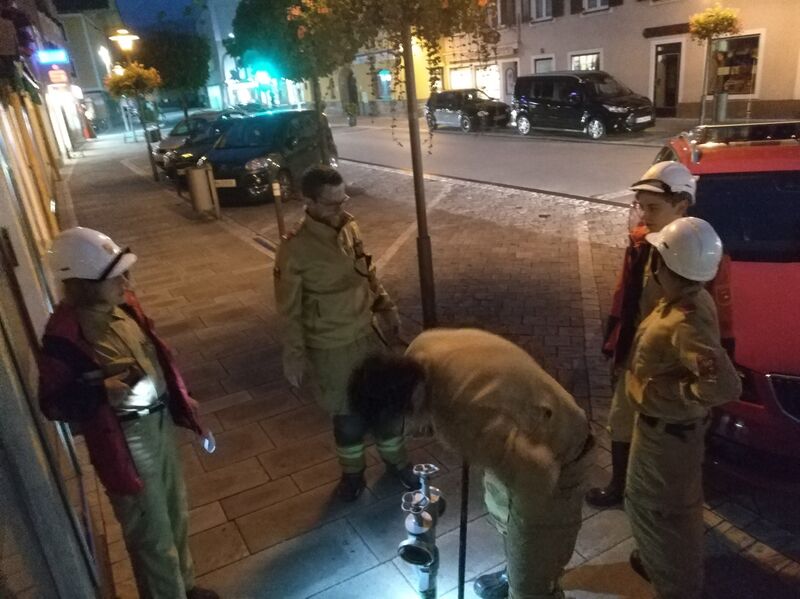 Nach der Ankunft beider Gruppen am letzten Ziel, wurde gemeinsam die Übungsstelle abgesichert und ein Wasserbezug vom dortigen Überflurhydranten zum Tanklöschfahrzeug hergestellt.