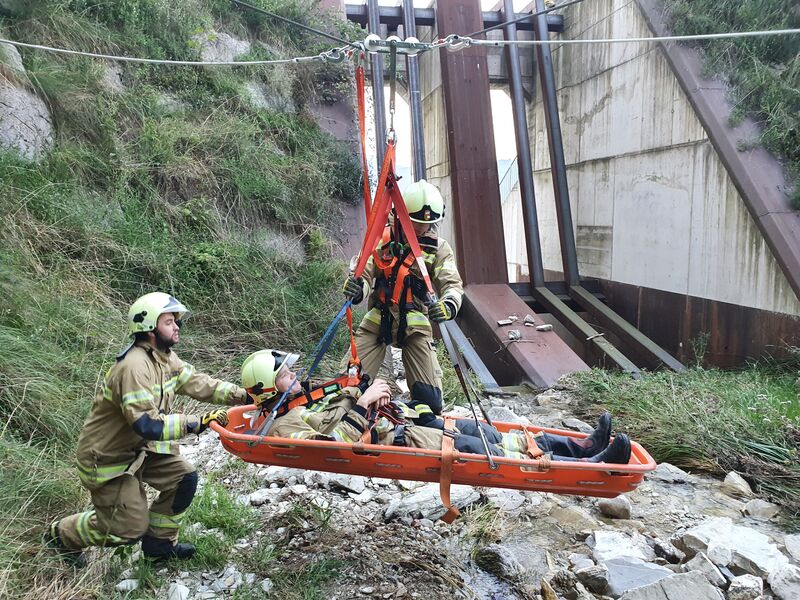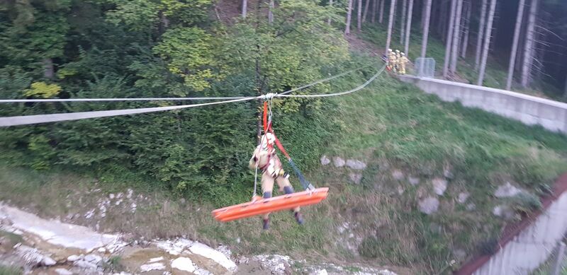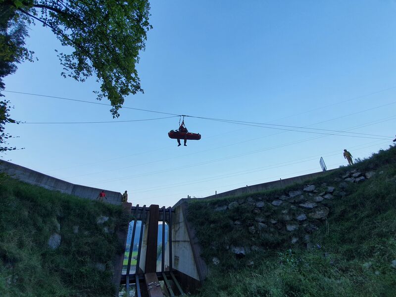 Am 12. August 2020 wurde die Rettung einer verletzten Person mittels einer "Seilbahn" beübt.