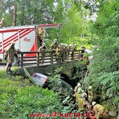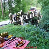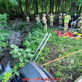 Übungsannahme: Verkehrsunfall - Fahrzeug im Bach, drei Verletzte, davon zwei eingeklemmt …