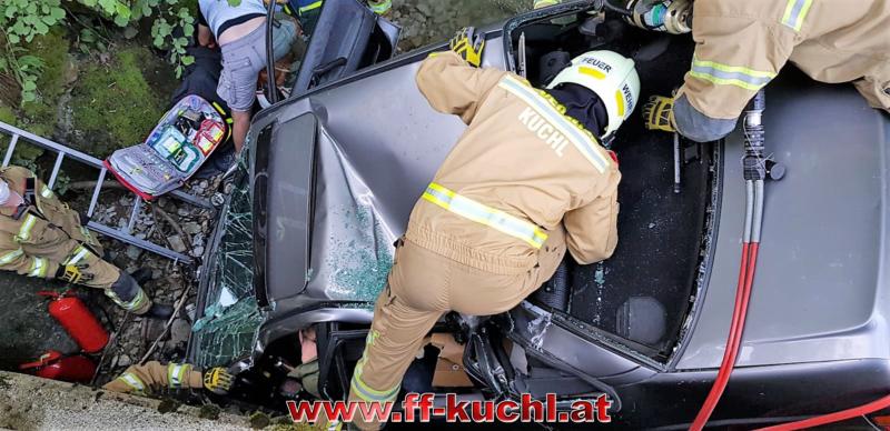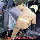 Gesamteinsatzleiter OBI Gerhard Scherfl erkundete die Lage und teilte die einzelnen Abschnitte ein. Fahrzeugkommandant - Rüstlösch Kuchl - BI Markus Neureiter übernahm den Abschnitt der technischen Einsatzleitung am Fahrzeug. In Absprache mit dem rasch eingetroffenen "Notarzt" wurde die weitere Vorgangsweise festgelegt und es konnte mit den Arbeiten zur Menschenrettung unter schwierigen Bedingungen begonnen werden ..