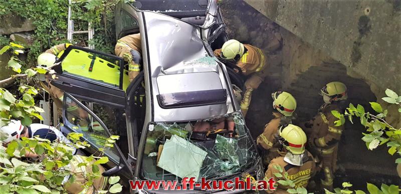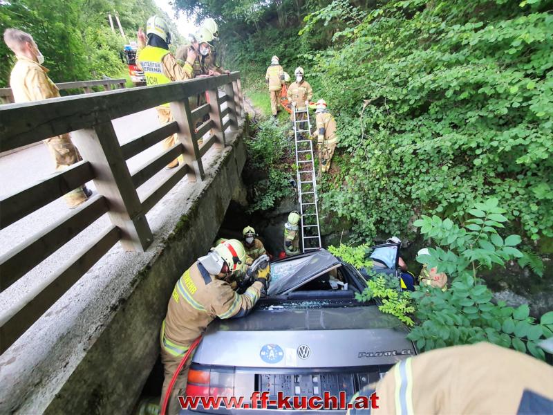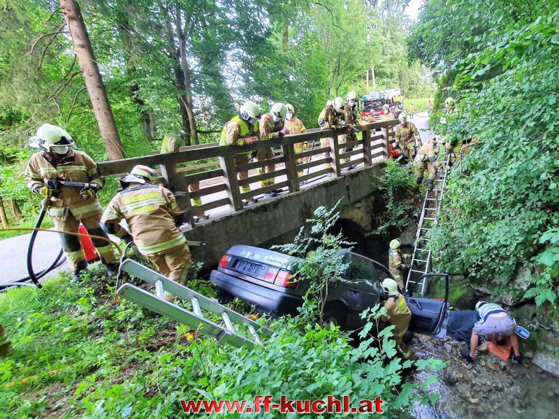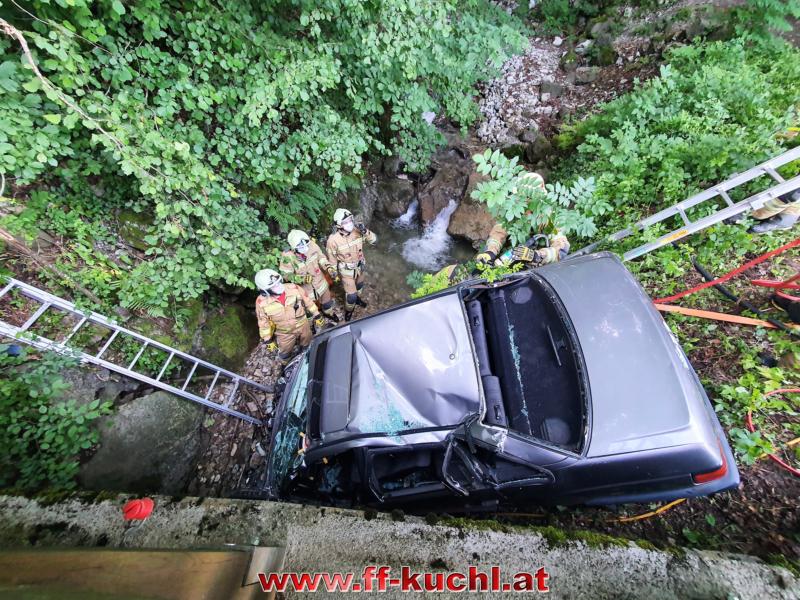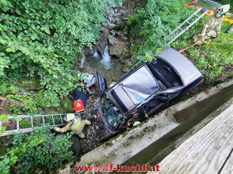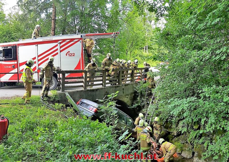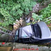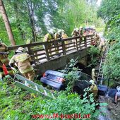 Ein Fahrzeug war mit drei Jugendlichen nach einer Schulabschlussfeier zu schnell auf der Gemeindestraße unterwegs, in der Nähe des Heilingsteinerbauern ins Schleudern geraten und in das wasserführende Bachbett des Weißenbaches gestürzt. Eine Person wurde aus dem Fahrzeug geschleudert und drohte zu ertrinken. Zwei Personen waren im Fahrzeug eingeklemmt …
