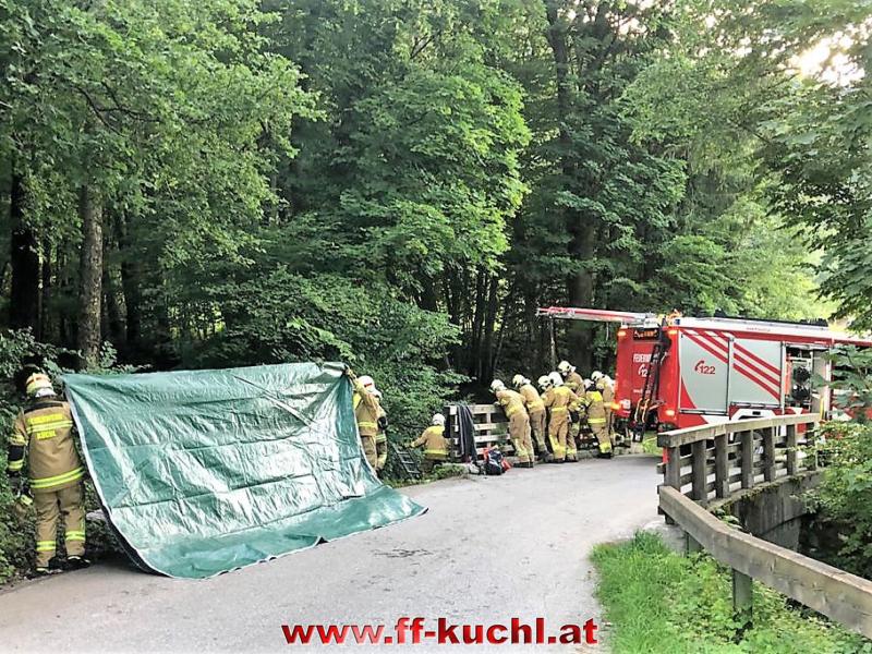 Eine spektakuläre Einsatzübung organisierte der III. Zug der Freiwilligen Feuerwehr Kuchl im Ortsteil Weißenbach.
