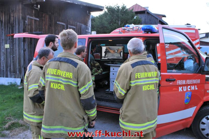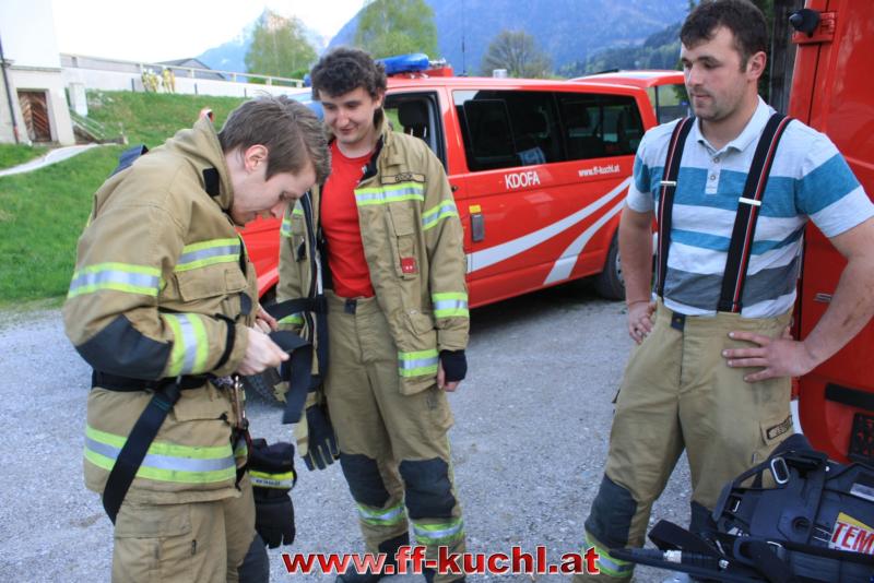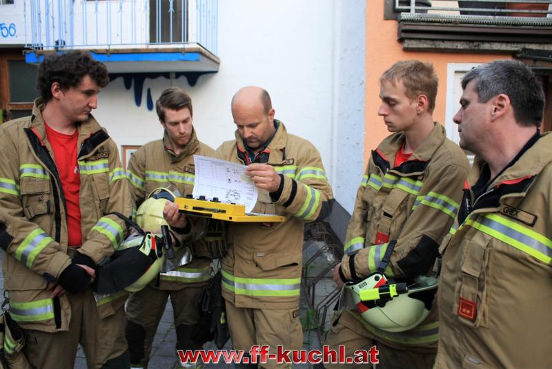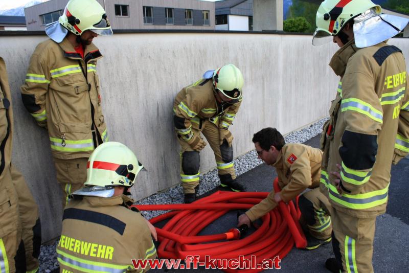 Auf Grund der absolut sommerlichen Temperaturen wurde das geplante Übungsthema "Atemschutz-Theorie" vom II. Zug kurzer Hand ins Freie (Marktbereich Kuchl) verlegt.