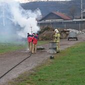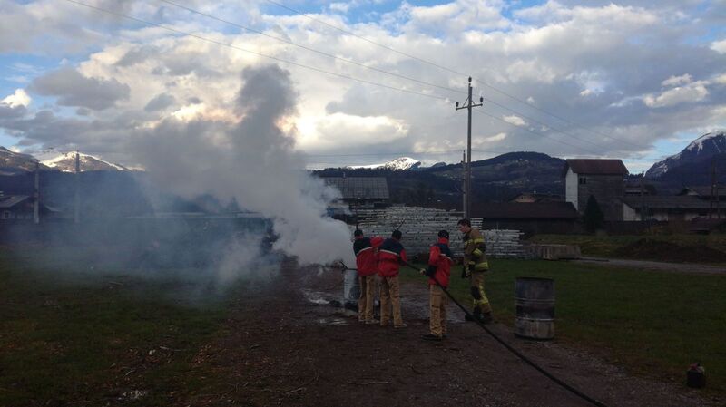 Bei der Brandbekämpfung galt es, mit dem "Schnellkupplungsverfahren" so schnell als möglich die Zubringerleitung vom Oberflurhydranten zum Brandobjekt zu legen und anschließend den realen Brand, ausgelöst durch vertrocknete Christbäume, fachgerecht zu löschen.