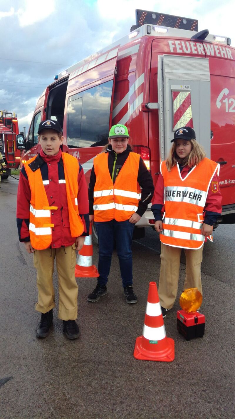 Übung Feuerwehrjugend - Verkehrsabsicherung, Brandbekämpfung und Schnellkuppelverfahren