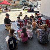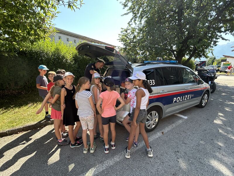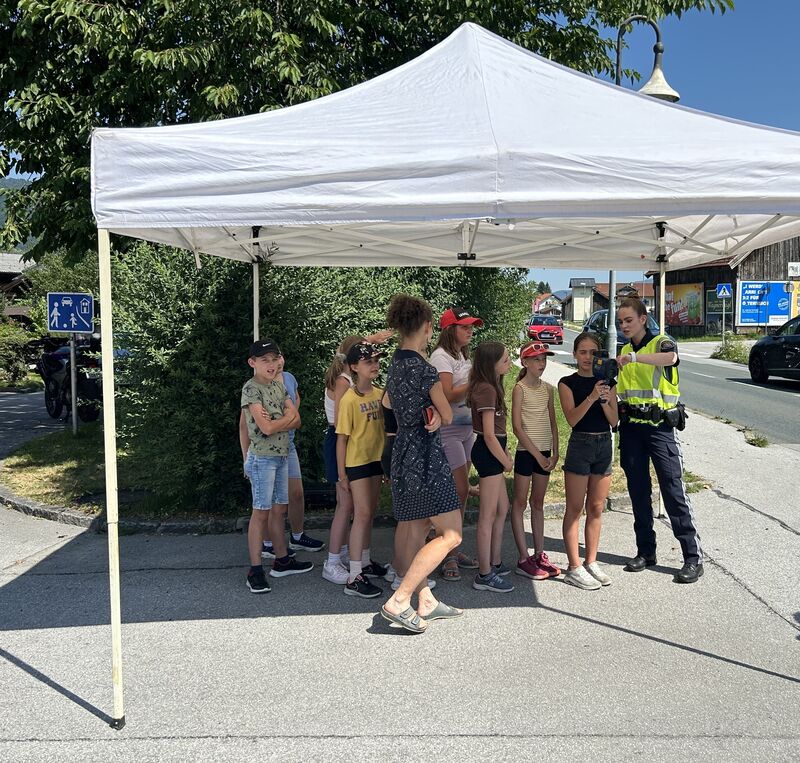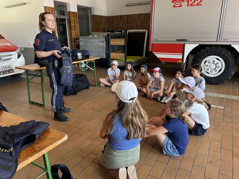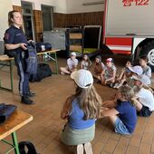 Bei der Polizei durften die Kinder unter anderem selbst mit einem Radargerät die Geschwindigkeit vorbeifahrender Autos messen. Ein besonderes Highlight war der junge Polizeihund, der noch mitten in seiner Ausbildung steckt. Die Kinder waren begeistert und verfolgten neugierig, wie so ein Diensthund trainiert wird und welche Aufgaben er später übernehmen soll.