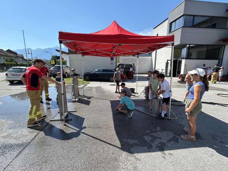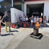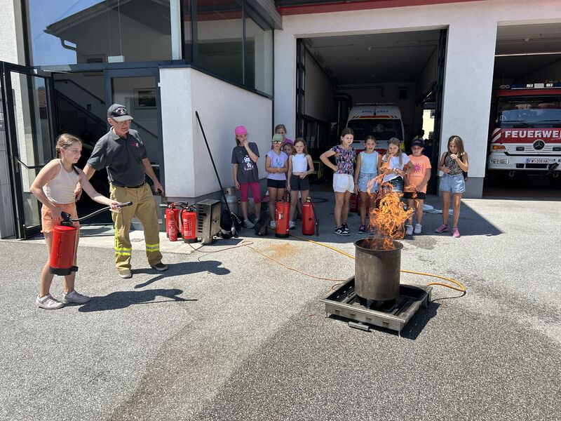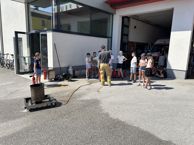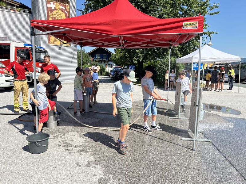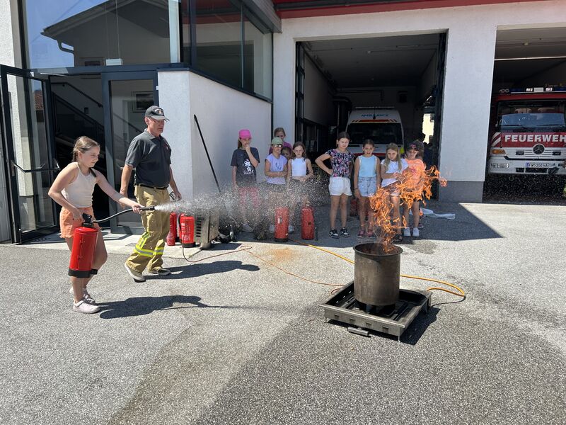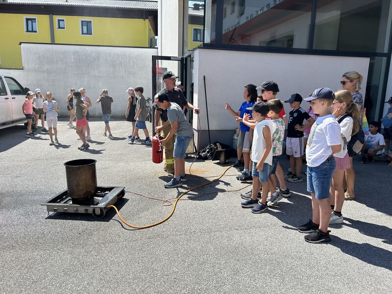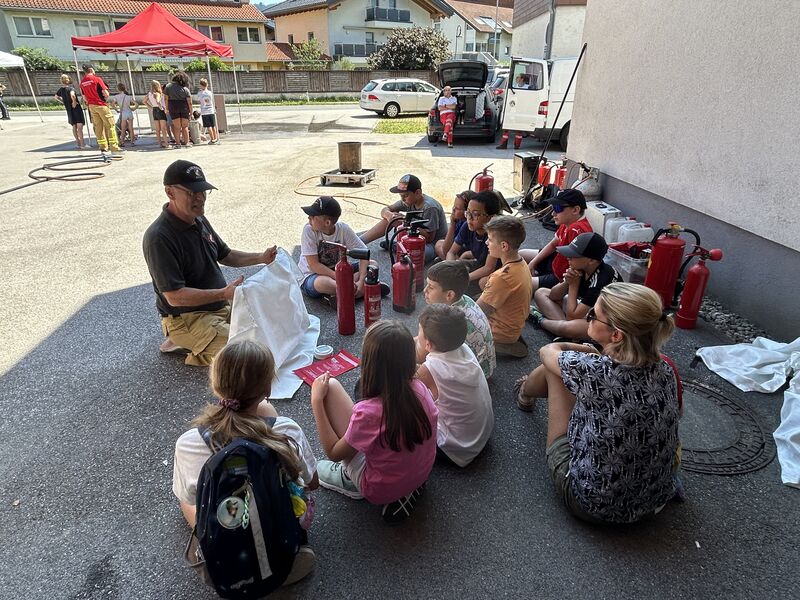 Die Feuerwehr beeindruckte mit einer Vorführung zur technischen Rettung – mit hydraulischen Geräten wurde demonstriert, wie Menschen aus einem verunfallten Fahrzeug befreit werden. Besonders spektakulär war wieder die Station „Fettexplosion“, bei der gezeigt wurde, wie gefährlich es ist, brennendes Fett mit Wasser zu löschen. Anschließend durften die Kinder selbst Hand anlegen und mit einem Feuerlöscher ein kleines Feuer löschen.