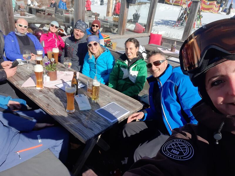 Bei diesem traumhaften Wetter konnten die Pisten richtig ausgenutzt werden. Zum Ausklang des Tages trafen sich die Mitglieder samt PartnerInnen bei der Schepperl Alm, wo der Tag einen gemütlichen Ausklang fand.