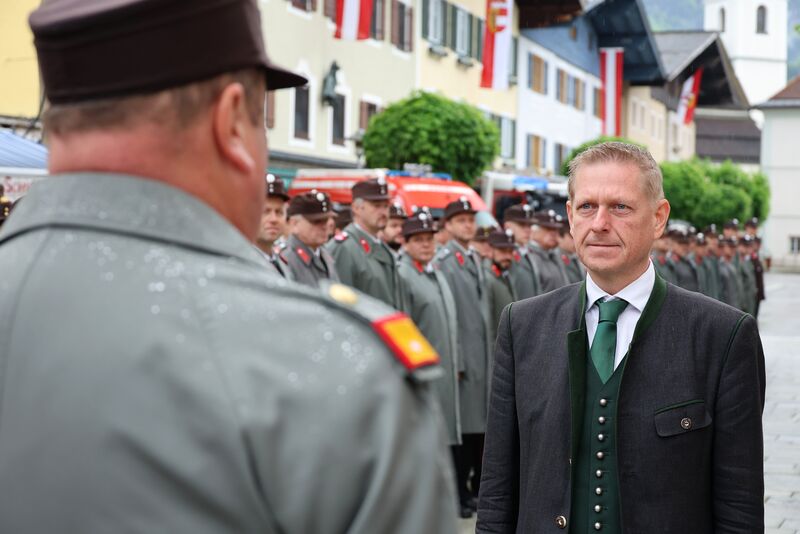 AFK BR Rupert Unterwurzacher sowie Bgm. Thomas Freylinger bedankten sich bei den Mitgliedern der Feuerwehr Kuchl für ihre Einsatzbereitschaft und das Engagement.